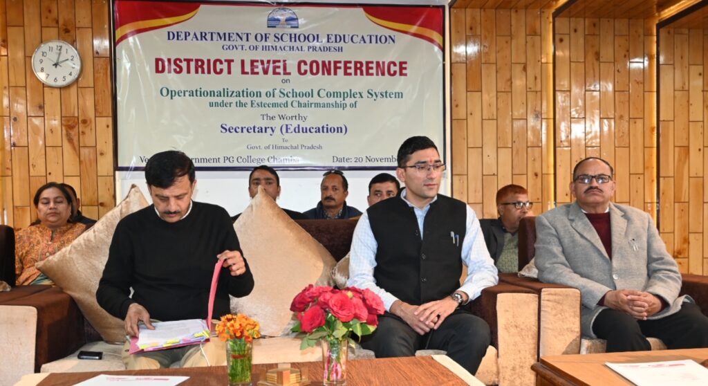 सचिव मुख्यमंत्री, शिक्षा, ऊर्जा, सूचना एवं जनसंपर्क, भाषा एवं संस्कृति राकेश कंवर ने आज राजकीय स्नातकोत्तर महाविद्यालय चंबा में स्कूल कॉम्प्लेक्स प्रणाली के प्रभावी क्रियान्वयन को लेकर आयोजित जिला स्तरीय सम्मेलन की अध्यक्षता की।