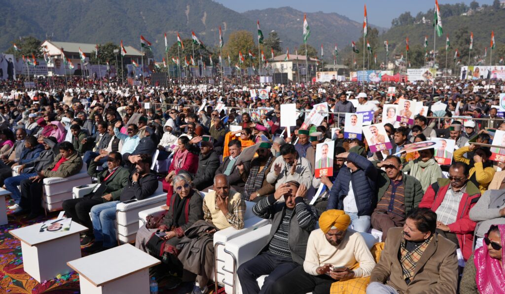 हिमाचल प्रदेश सरकार के कार्यकाल के तीन वर्ष पूरे होने के उपलक्ष्य में आज मंडी के पड्डल मैदान में भव्य जन संकल्प सम्मेलन आयोजित किया गया। प्रदेश भर से आए हजारों लोगों की अभूतपूर्व उपस्थिति ने इसे उत्सवी माहौल बना दिया। सम्मेलन में राज्य की विकास यात्रा, व्यवस्था परिवर्तन, सुशासन, आर्थिक सुधार, सामाजिक कल्याण और जनता की भागीदारी के प्रति राज्य सरकार की प्रतिबद्धता का तेजस्वी व प्रभावक रूप प्रदर्शित हुआ।
