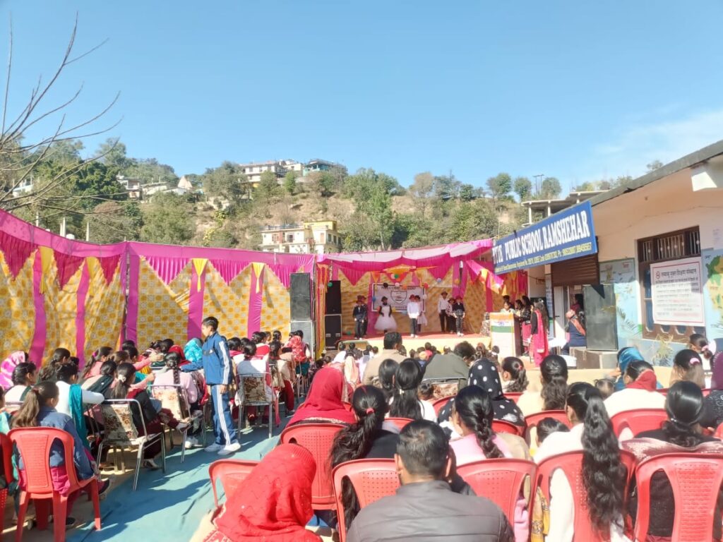 कार्यक्रम का शुभारंभ सरस्वती माता की प्रतिमा पर माल्यार्पण एवं दीप प्रज्वलन के साथ किया गया। विद्यालय के अध्यक्ष भूपेंद्र ठाकुर उर्फ राज ने मुख्य अतिथियों को हिमाचली संस्कृति की पहचान पहाड़ी टोपी पहनाकर सम्मानित किया।