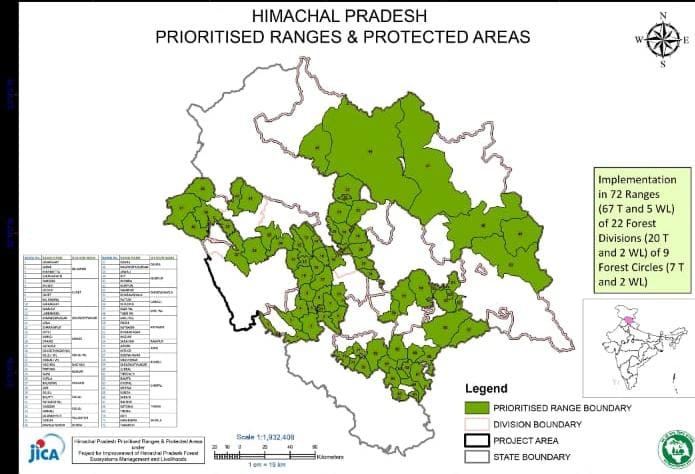 यह परियोजना प्रदेश के 7 जिलों—किन्नौर, शिमला, बिलासपुर, मंडी, कुल्लू, लाहौल-स्पीति और कांगड़ा के 9 वन वृत्तों, 22 वन मंडलों और 72 वन परिक्षेत्रों में क्रियान्वित की जा रही है।