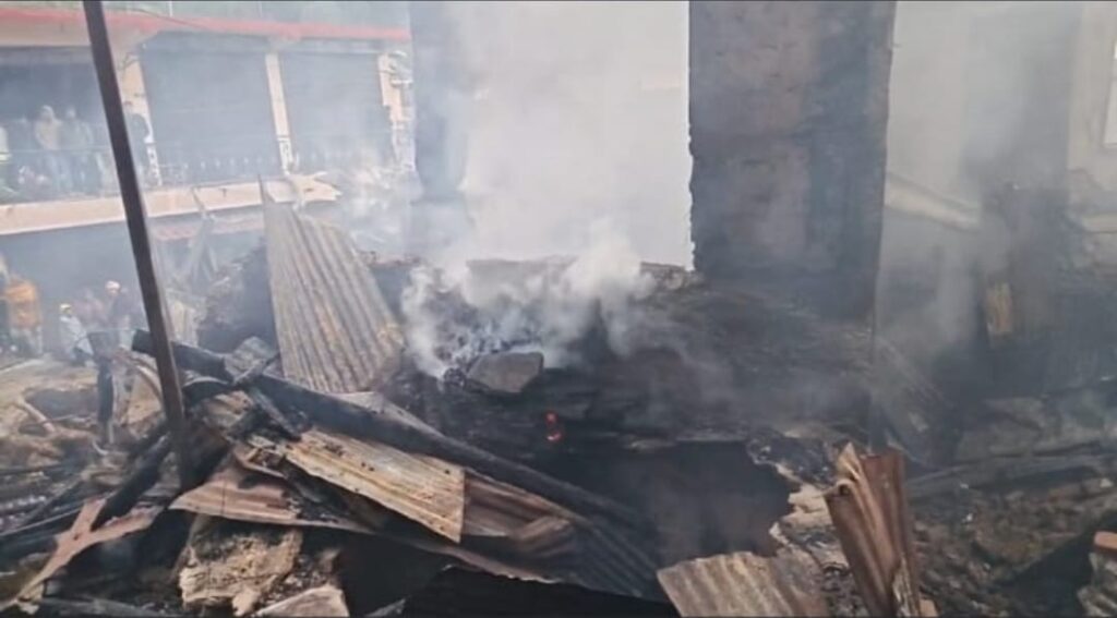 आग में कई दुकानें भी जलकर खाक हो गईं।