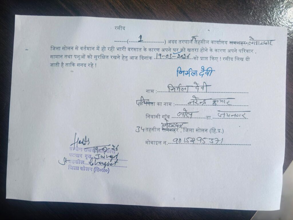 प्रशासन की ओर से पीड़ित परिवार को तत्काल राहत प्रदान करते हुए तरपाल उपलब्ध करवा दी गई है, ताकि वे अस्थायी रूप से सुरक्षित रह सकें।