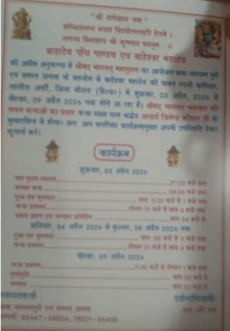कथा के सफल आयोजन हेतु भंडारे की व्यवस्थाओं को लेकर यह बैठक 22 मार्च 2026 (रविवार) को सुबह 10 बजे सरयांज (खाली) ग्राउंड में आयोजित की जाएगी।