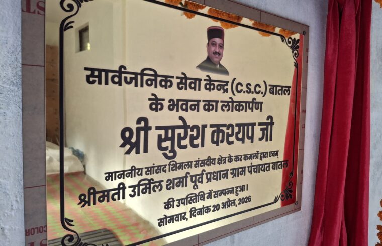 सांसद सुरेश कश्यप ने गत दिवस अर्की विधान सभा चुनाव क्षेत्र के ग्राम पंचायत बातल में सांसद निधि से बने बस स्टैंड और सार्वजनिक सेवा केंद्र (CSC) भवन का लोकार्पण किया।