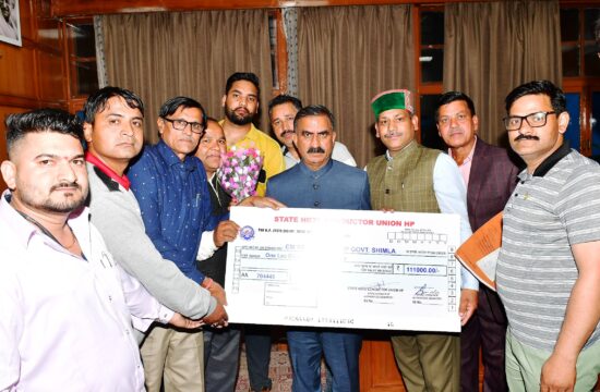 शिमला 13 मई,हिम नयन न्युज /ब्यूरो /नयना वर्मा हिमाचल पथ परिवहन निगम कंडक्टर यूनियन ने मुख्यमंत्री ठाकुर सुखविंदर सिंह सुक्खू को शुक्रवार देर सायं यहां मुख्यमंत्री राहत कोष के लिए एक लाख ग्यारह हजार रुपये…